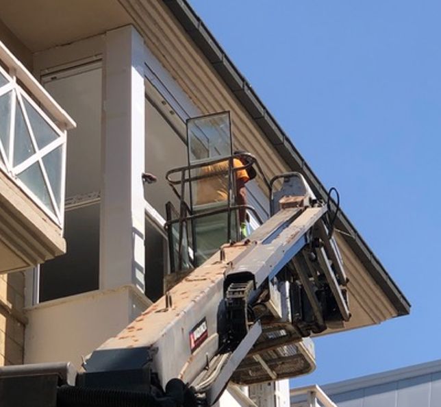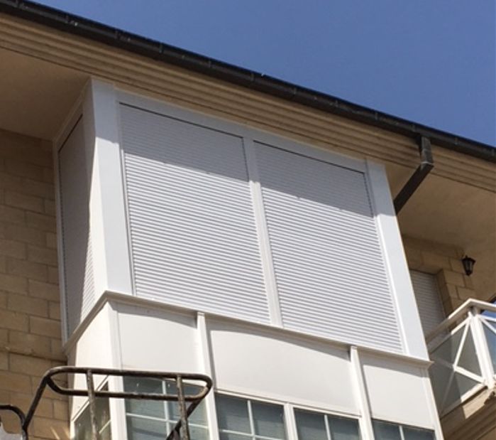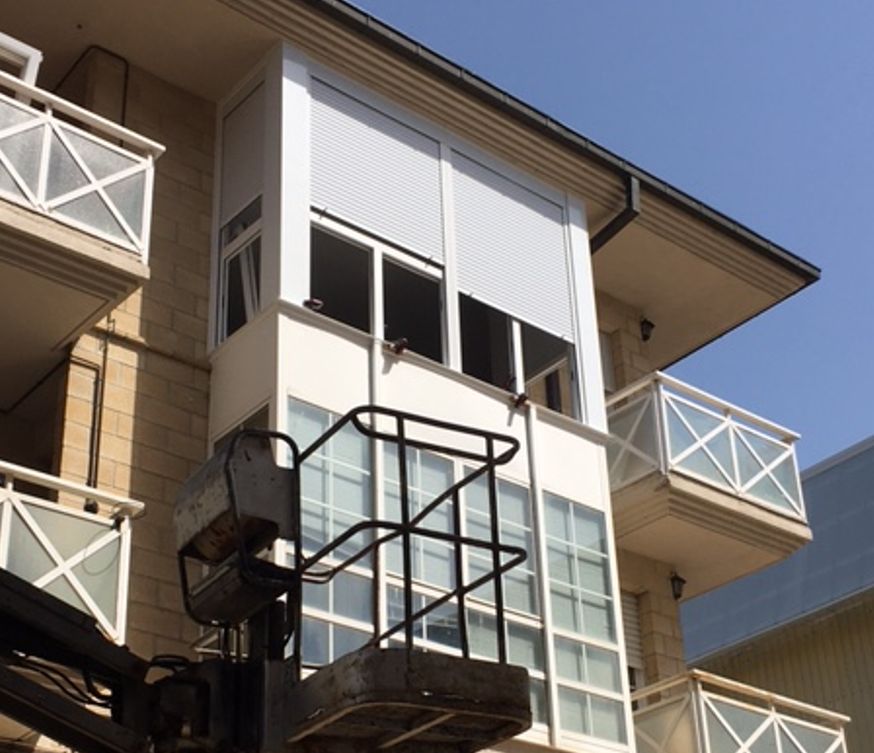 Colocación de mirador de PVC color blanco, con persianas y vidrios decorativos